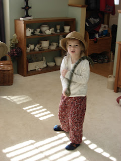 ...playing Indiana Jones (funny that his whip is a crocheted snake considering Indiana is scared of snakes :)) |